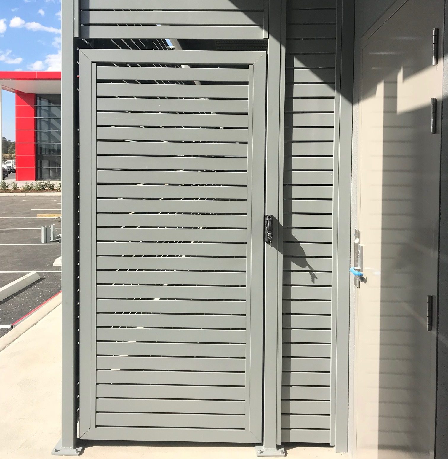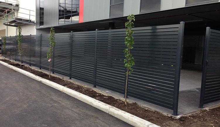 Our range of privacy slat screening is ideal for use around alfresco areas, mechanical plant and ventilated infills at industrial warehouses and educational facilities. Manufactured from aluminium and then powdercoated to your desired finish, Summit's slat screen system is fast to install and designed in a way that conceals all fixings.